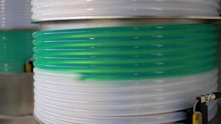 The desire for a comprehensive color palette extends beyond the automotive industry. Customers use their color preferences as unique identifiers in other industries, whereas companies use distinctive colors as a unique selling point for themselves and their products. Manufacturers from the construction and plastic industries, for example, require a multitude of available shades to cater to their customers’ needs. However, each color change in the supply line results in paint and rinsing agent waste during the painting process. This can involve disproportionately high costs, particularly with very small quantities. This is because current paint supply systems clean the hoses using solvent and compressed air to remove all paint and rinsing residues left behind before preparation of the next color run can begin. This process is laborious and time-consuming, with longer and thicker hoses resulting in higher paint losses.