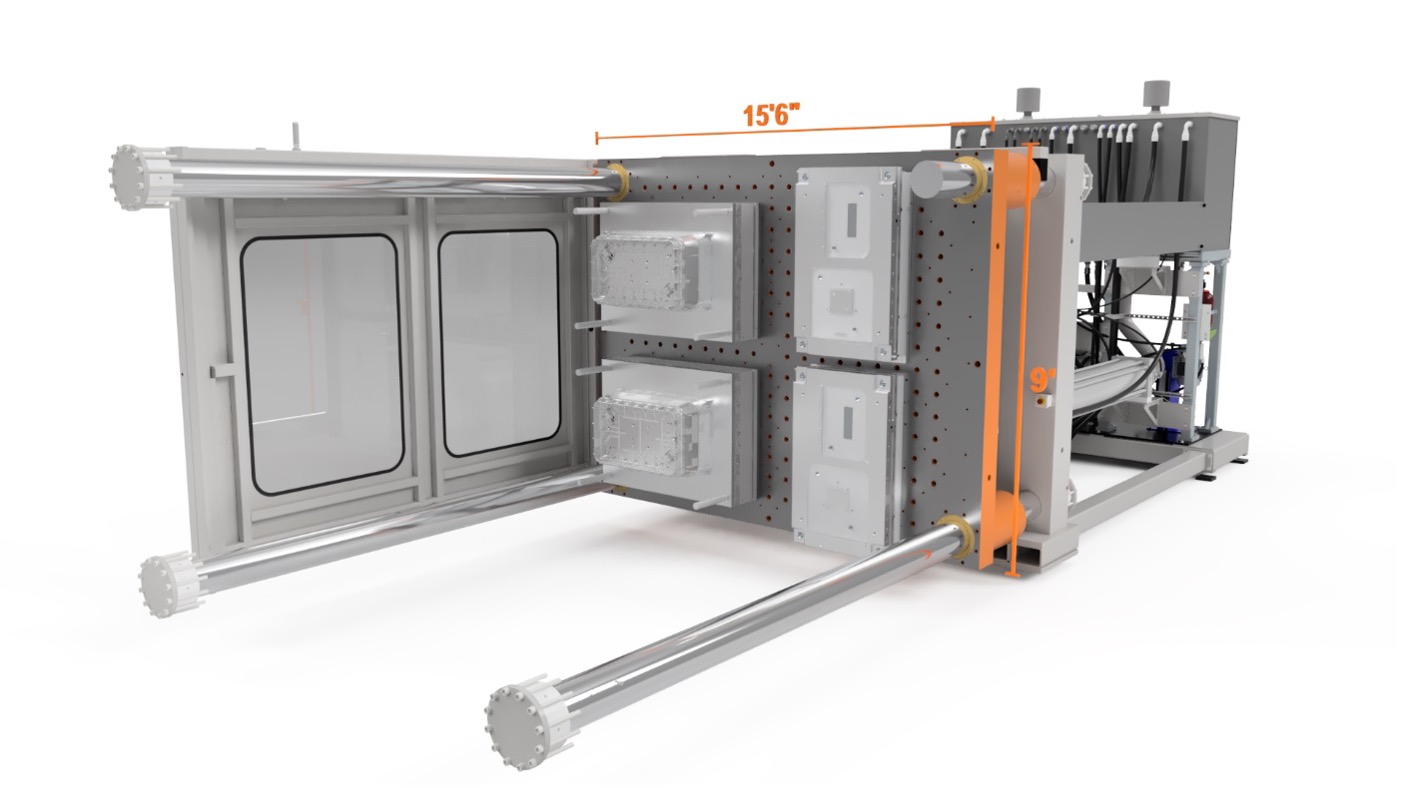 Wilmington Machinery offers Seven Low Pressure Machine sizes with configurable single or dual injection. Utilizing large platens up 15’6” (4.7m) long and 9’0” (2.7m) tall for making one large part or multiple parts, 4-6 molds, in a single cycle, resulting in less floor space, fewer machines, less labor and greater profits!